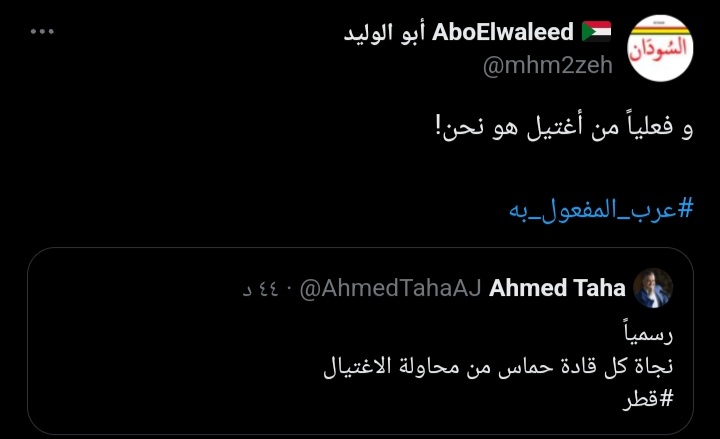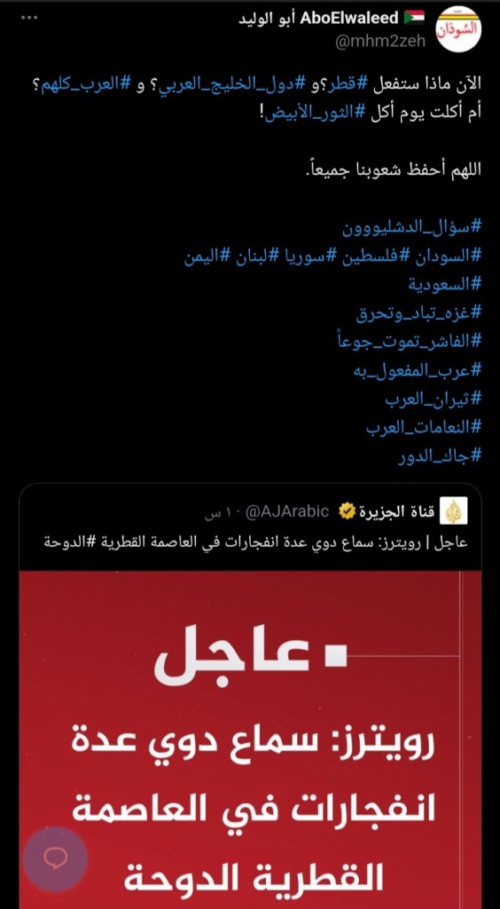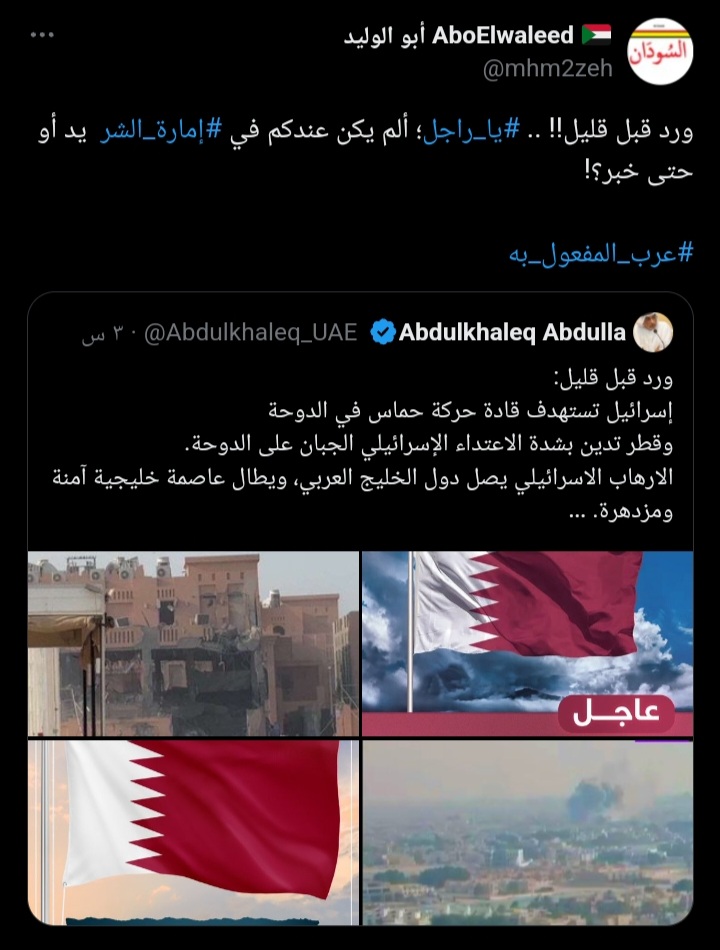 هاكم #السؤال و بلا تحسس و #حساسيات: إن كان #وفد_حماس للمفاوضات يقيمون أو يستضافون في دولة غير #قطر و لنقل في #السعودية أو #مصر أو #الجزائر تحديداً فهل كان #الكيان_المحتل سيضربها؟!